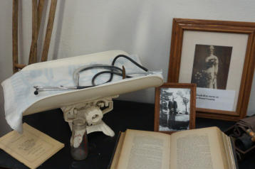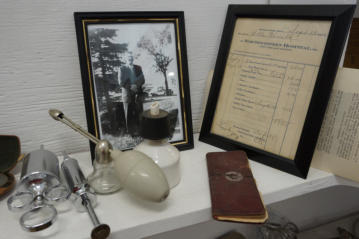 The community was lucky to have dedicated doctors and nurses throughout its history. These service people used the artifacts in the display, many of which were donated by doctor - archivist, H. Dean Hughes. Visitors can view drugs and potions, needles and trocars, baby scales, and even a rare bone mill. The Deuel County Memorial Hospital was built in 1949 with community support. The first clinic was built by Dr. Richard Maxwell in 1950. Maxwell treated over 12,000 patients from the day the hospital opened until he retired after 26 years of service. Approximately 1,665 babies were delivered during this time. His time included a diphtheria epidemic in the 1940s and a polio epidemic in 1952. Doctors who were familiar over the years include:McKay (1887)Bohl (1922)Wiley (1893)Hershkowitz (1934)Harvey (1896) Maxwell (1938)Bently (1897) Willen (1942)Staley (1898)Hughes (1965)Bates (1910)Frazer (1979) Boutelle (1912)